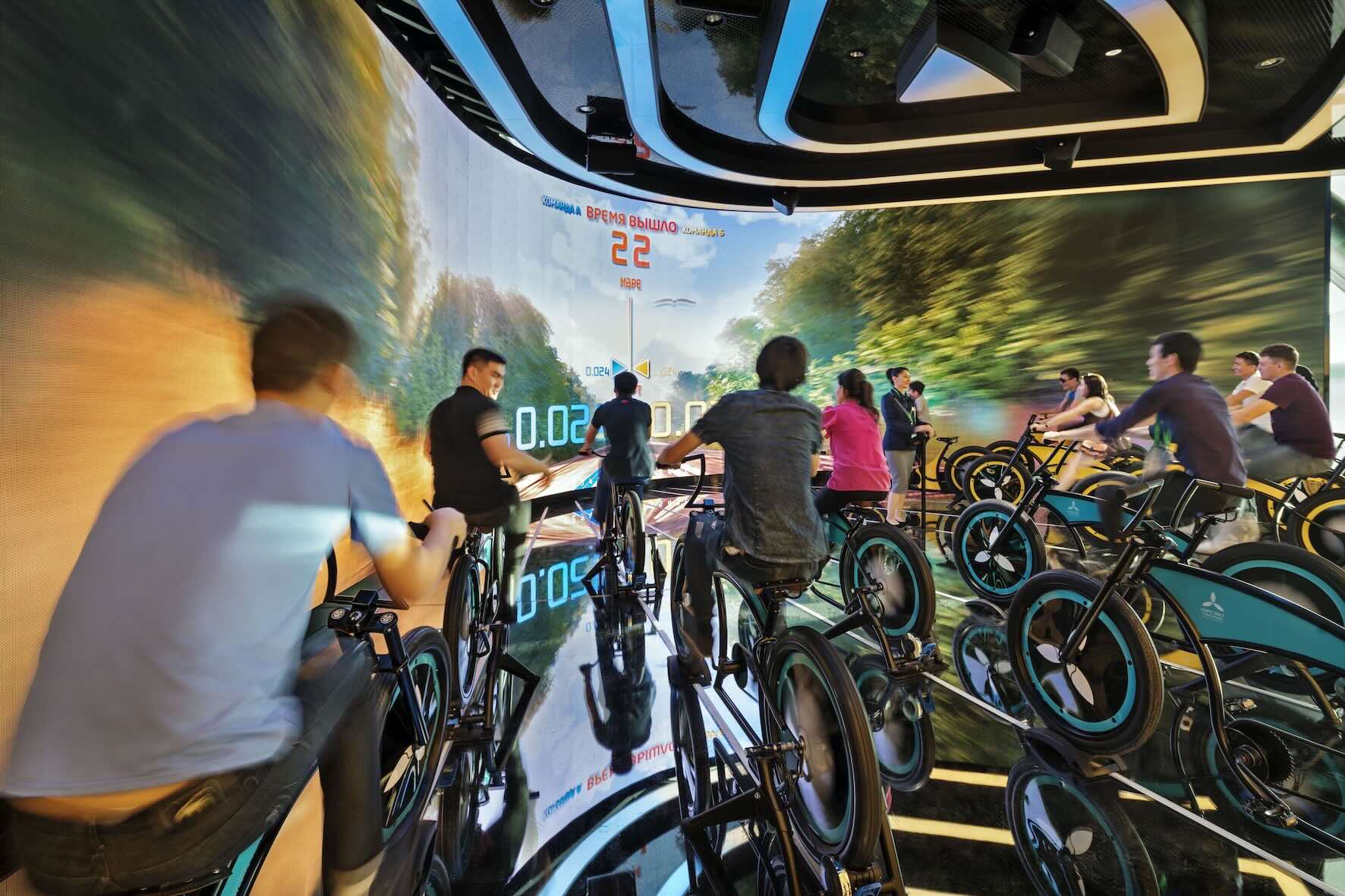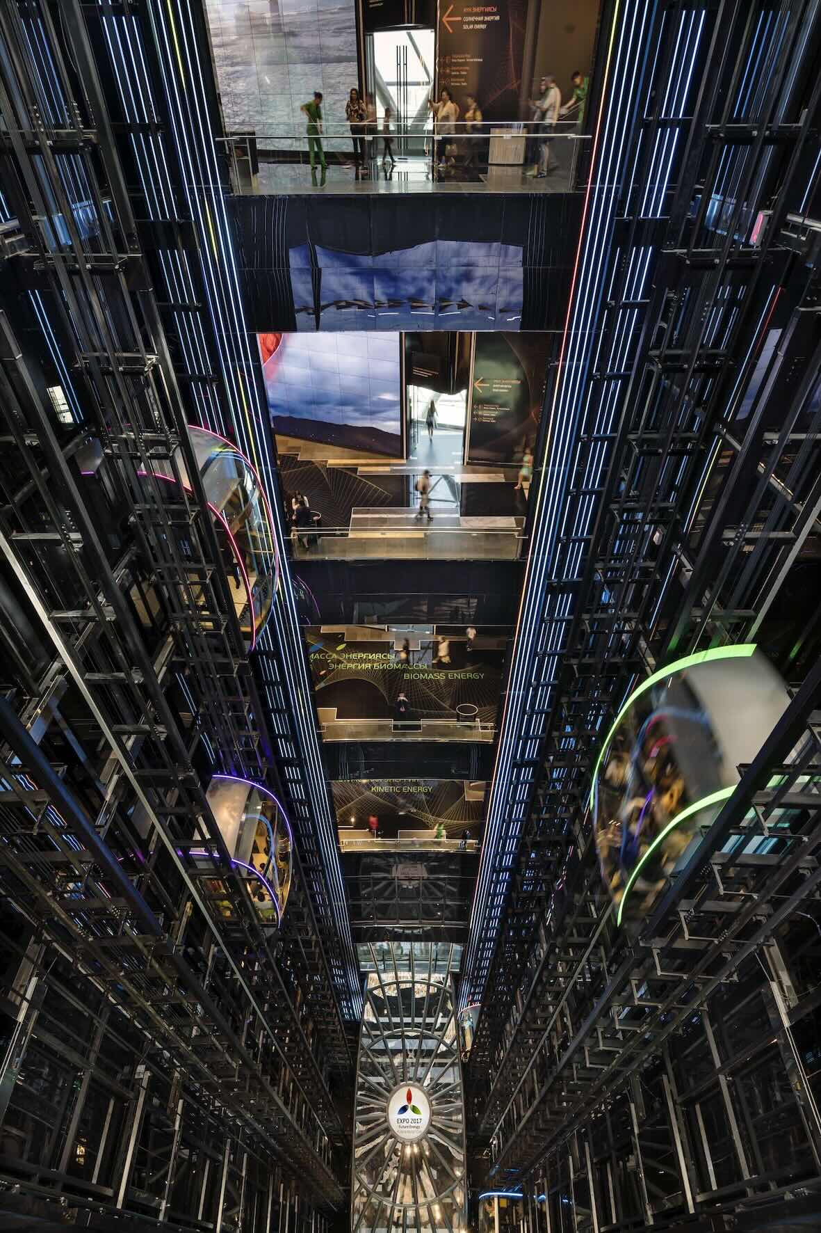 Across 10.000 square-meters and four floors, visitors journey through kinetic, solar, wind, and biomass worlds in the main pavilion and landmark of the Expo 2017. A journey through diverse organic soundscapes and musical pieces immerse the visitors into a display of future energy sources.